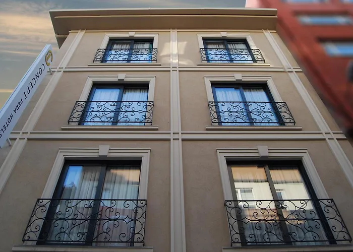4 yıldızlı Concept Pera Hotel, Taksim semtinde İstanbul Modern Sanat Müzesi'a yürüyüş mesafesinde yer alır. Asmalı Mescit Caddesi yakınında konumlanan Concept Pera Hotel Eskiomerler şehir manzaralı 10 oda sunmaktadır.